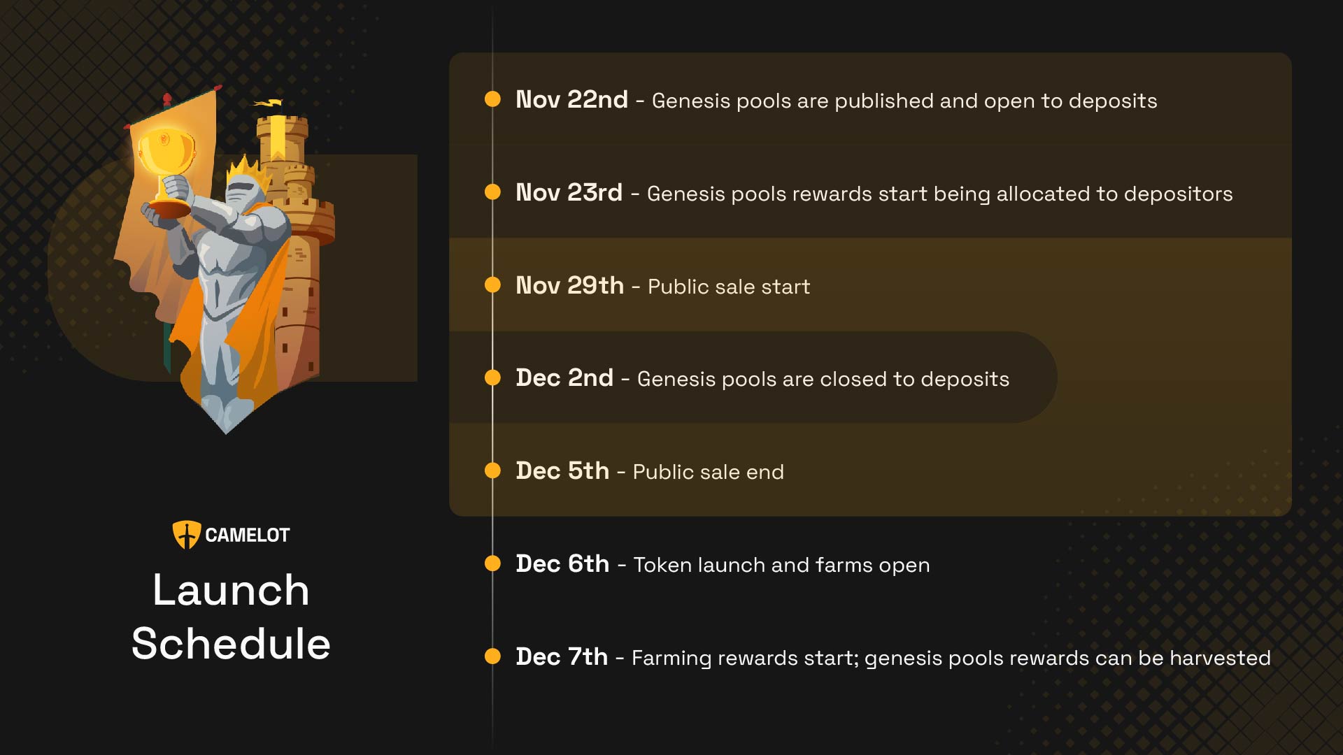 <figure><img src="https://3420642431-files.gitbook.io/~/files/v0/b/gitbook-x-prod.appspot.com/o/spaces%2FHBFQDThxW7Uo7iHfOHG5%2Fuploads%2FRWwPv8LfZhLds1ER86LQ%2FCamelot%20Roadmap.jpg?alt=media&#x26;token=e5872b57-a737-40c6-9060-4e8b49508fe4" alt=""><figcaption></figcaption></figure>