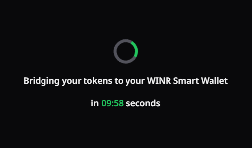 The transfer should take approximately 10 minutes, but it may take longer during periods of high traffic. Withdrawals to WINR chain should take no more than 1 minute